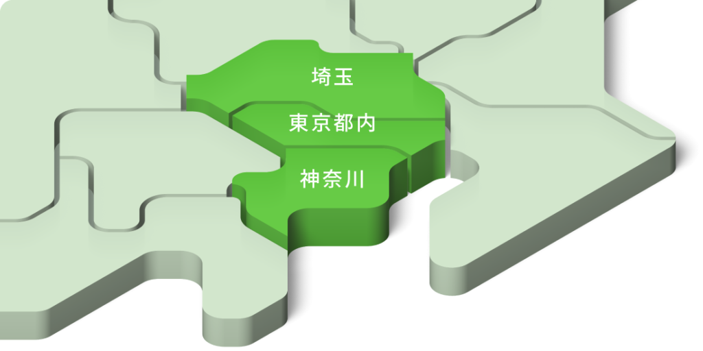 東京都内、神奈川(川崎市、横浜市、横須賀市、逗子市、鎌倉市)、埼玉(和光市、新座市、藁市、所沢市、川口市)のエリアに対応しています。