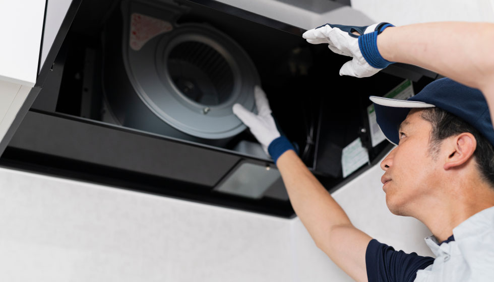 吸い込みが悪い換気扇を高性能レンジフードに交換。キッチンを清潔に保ちます。